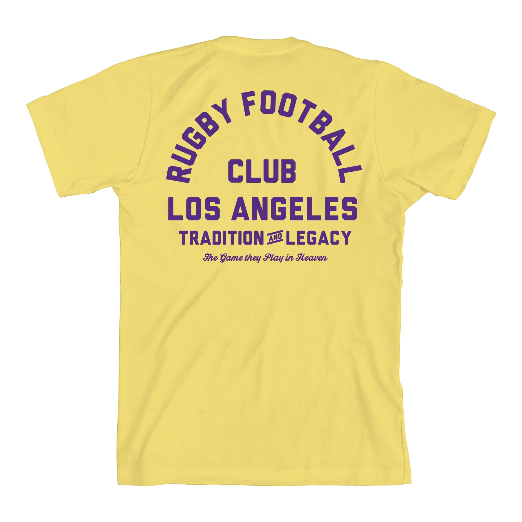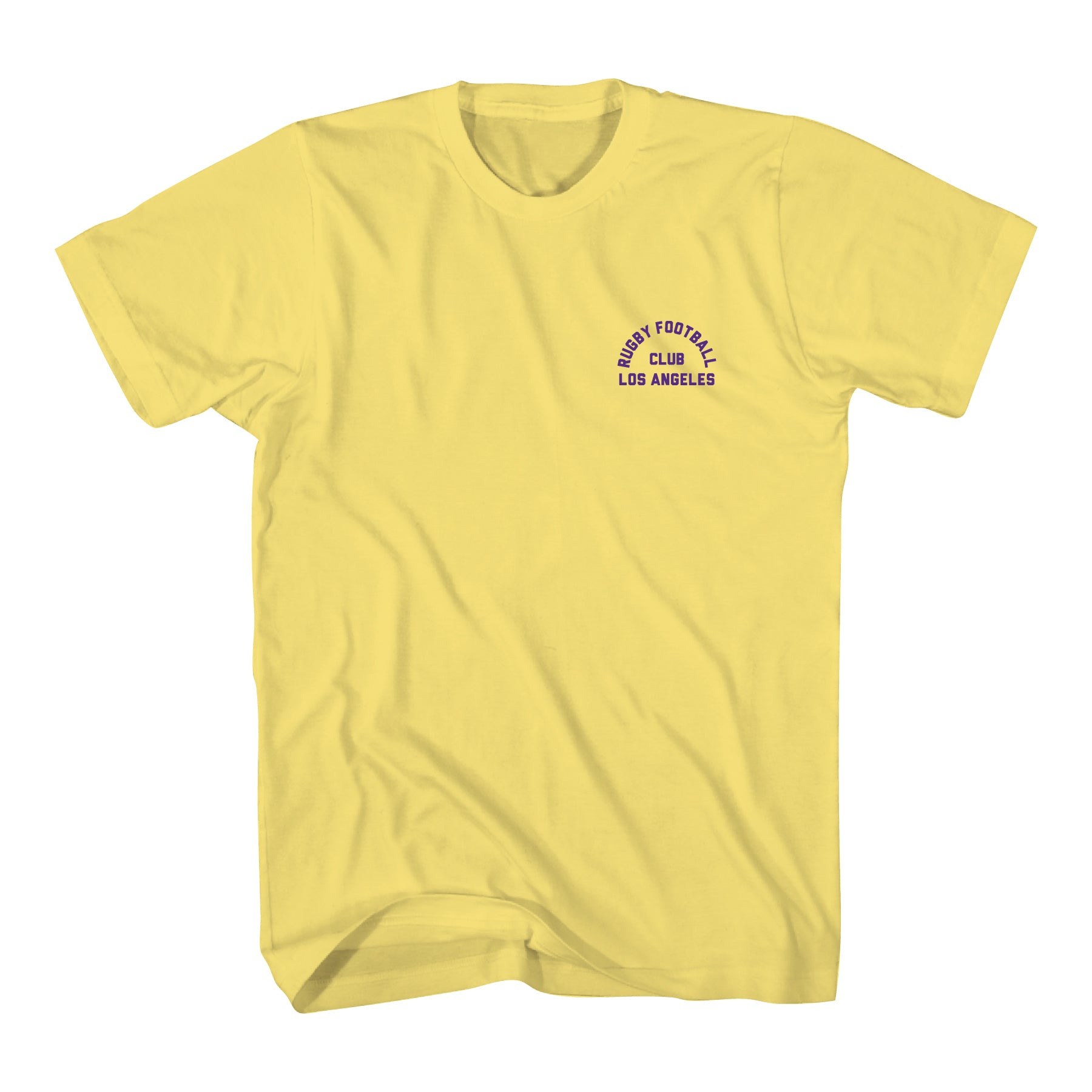 Rugby Football Club Los Angeles - 'City' Street T 'Yellow and Purple' with RFCLA badge on front.